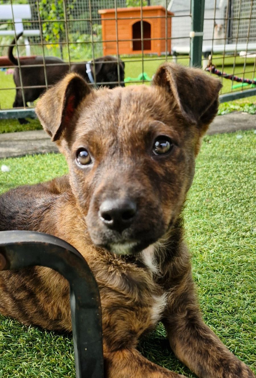 Meet Isha a very cute brindle pup who likes nothing better than playtime and lots of cuddles.