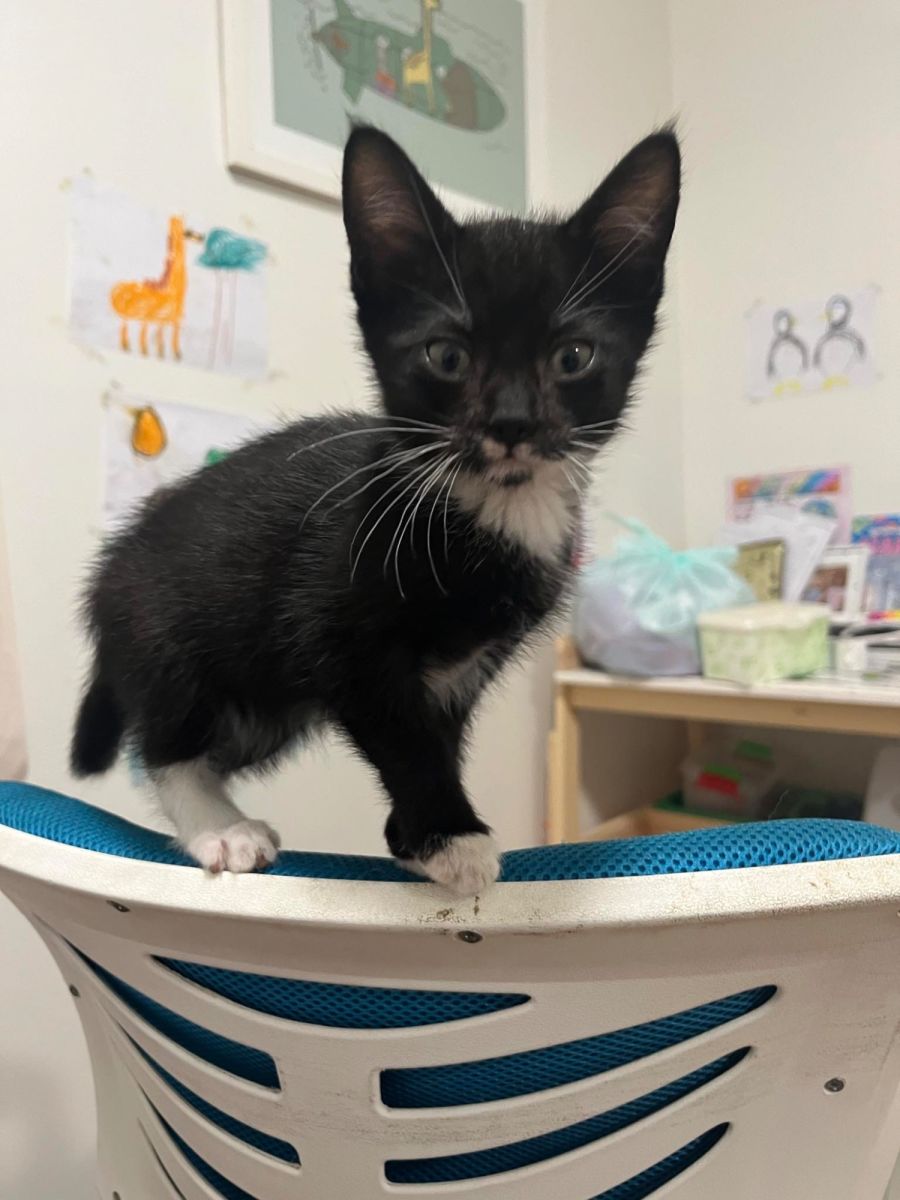 Say hello to Apple, a delightful 10-week old Black & White Domestic Shorthair male kitten.