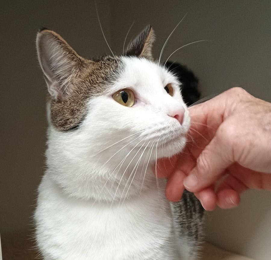 Meet Sparkle, a handsome 1-year-old white and brown tabby with a playful and affectionate personality. This boy was surrendered after only a few months in a home. Sparkle is full of intelligent energy and curiosity, making him an engaging companion who will keep you entertained. He thrives on regular play sessions, which help to stimulate his active mind and keep him happy.