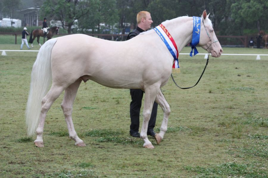 Acclaim in a rising 27 old Cremello stallion, (he is way too old to think of even gelding him) he has a very good temperament and well mannered though still all boy, I don't want him being breed with and I wont give his registration certificate. He is easy to do anything with ie worm, rug, wash, farrier, float. etc. Acclaims date of birth is 22/11/97, he is 68% Arab, he is 15h. He did lose his right eye through cancer several years ago.