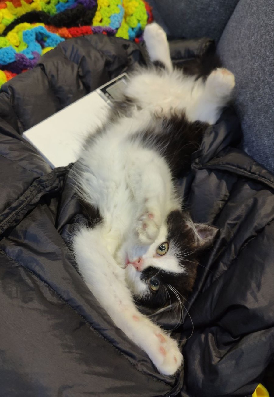 Meet tiny Faith, a delightfully sweet and quiet kitten who is fond of lap lounging and under-blanket adventures. She truly enjoys being held and loves when her belly and chest are gently rubbed, finding much comfort in her human's touch. She is the smallest of her siblings, who have already moved on to loving forever homes.