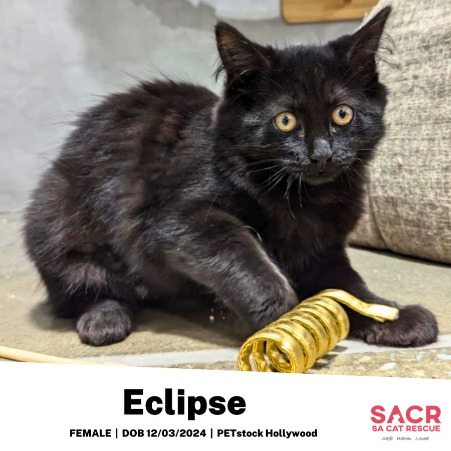 Eclipse's adoption fee is $180 which includes desexing, microchipping, parasite prevention, and initial F3 vaccination.