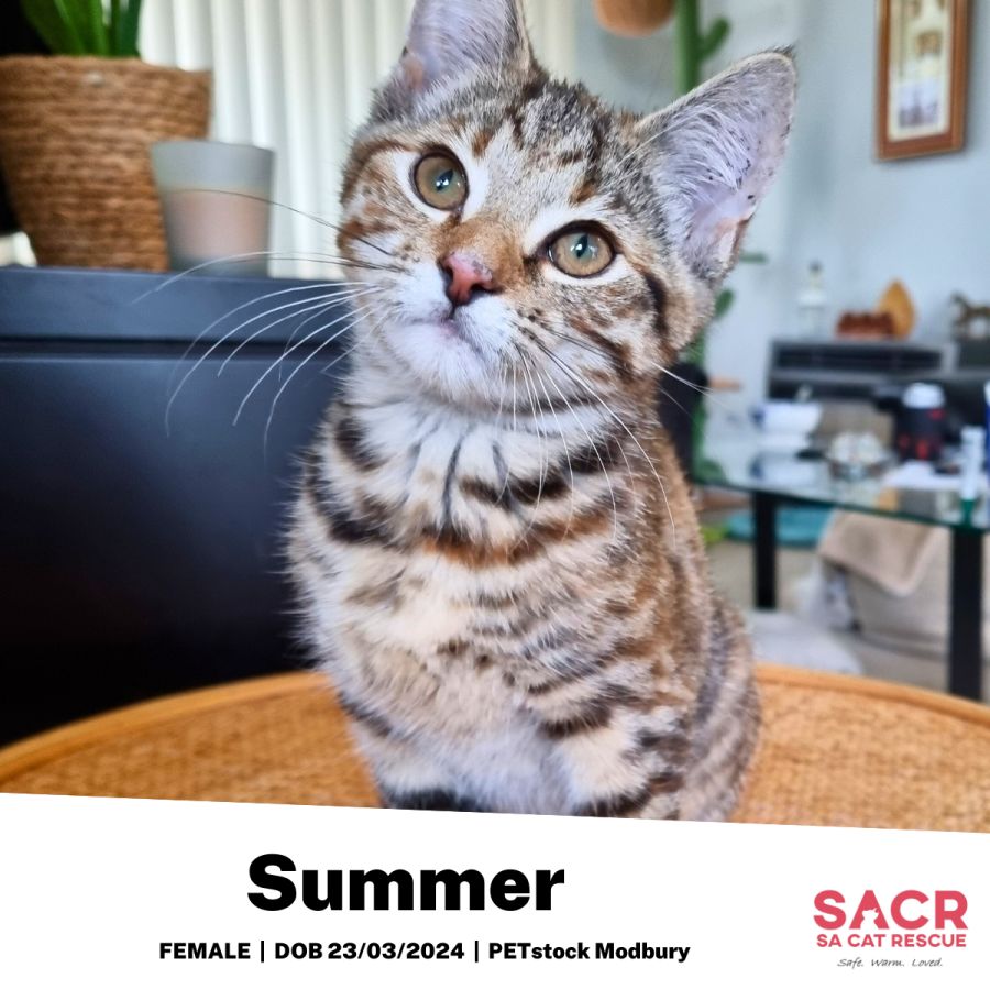 Meet Summer! Don't let her small size fool you; she comes with a big personality and an even bigger heart. Sweet, spirited, fun-loving, and absolutely adorable, Summer is a feline who embodies joy in every way.