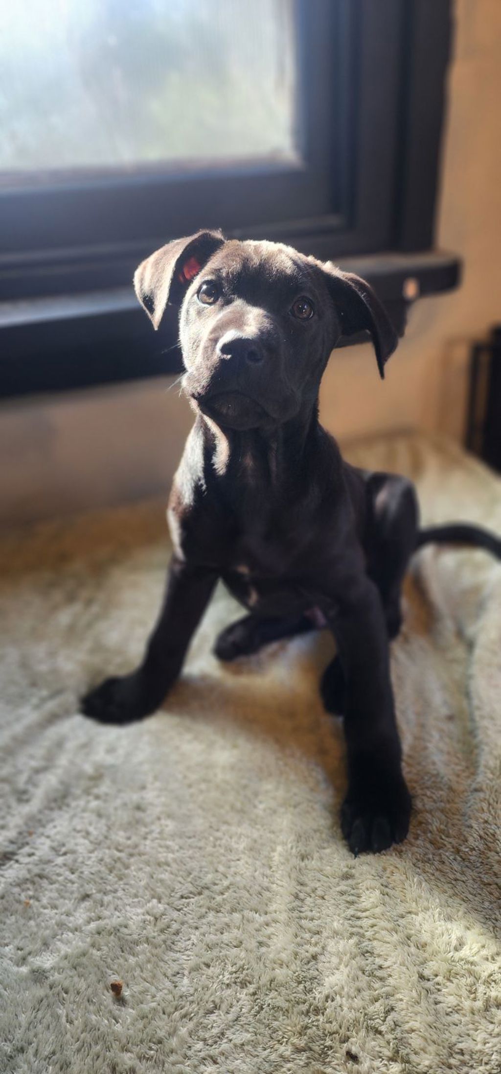 Once upon a time, in a land bathed in the golden hues of eternal twilight, there was a young and enchanting pup named Othello, a Staffordshire Terrier mix with a heart full of curiosity and a spirit as playful as the summer breeze. Othello was no ordinary puppy; he possessed a charm that could melt the hardest of hearts and a joy that lit up the darkest of days. With eyes that sparkled like the morning dew and a tail that danced with the rhythm of his boundless energy, Othello was destined to bring happiness to a loving family. This little prince was eager to embark on a grand adventure of learning and exploration, seeking a home where he could flourish and share his love.