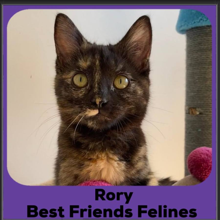 Meet Rory, a stunning tortie kitten with gem-like colours that captivate everyone who meets her. Rory is not just beautiful; she’s gentle, loving, and playful, making her a truly special companion.