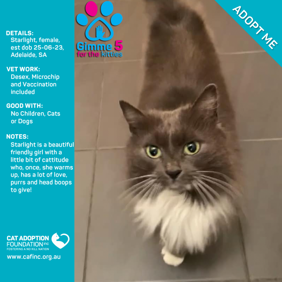 To adopt this kitty please contact Sayla on 0422 652 837 or email us at info@cafinc.org.au.