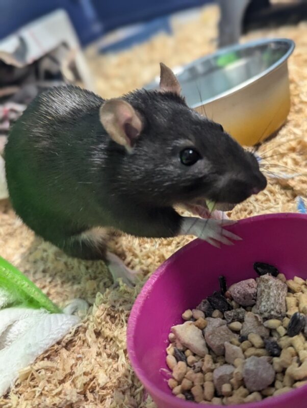 Perla & Bianca are looking for a loving forever home where they can stay together. They would thrive in a home with space for a large, enriching cage setup with plenty of toys, climbing opportunities, and cozy spots to rest. An experienced rat owner or someone willing to learn about their care would be ideal. Bianca loves to investigate every nook and cranny of her environment. She's curious, active, and always the first to greet you at the cage door