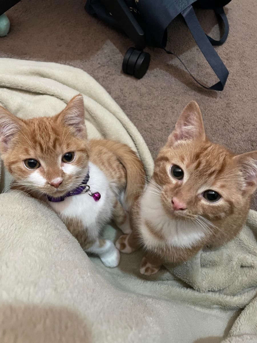 Momo is calmer and loves her food just a little bit more than her brother. Both of them are incredibly sweet kitties who love a good snuggle in your lap, and are always up for head pats!