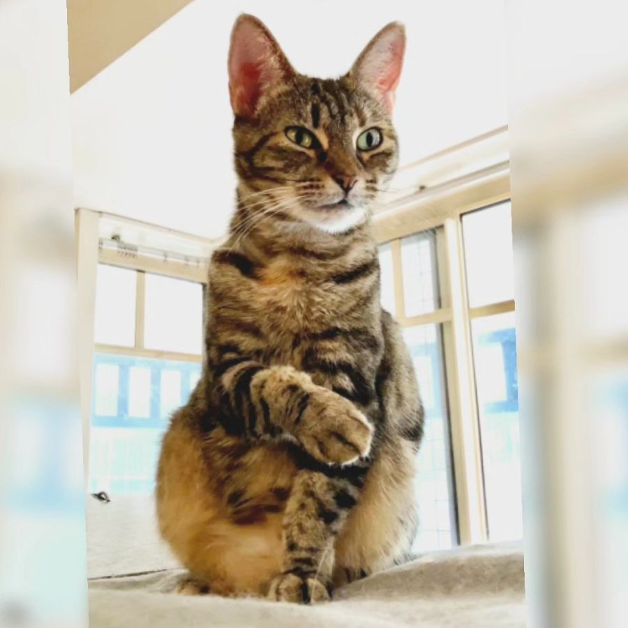 This little lady is known for her love of soft fluffy blankets. Her purrs of delight as she kneads and settles down on her favourite blanket are the sweetest sounds for any cat lover. You'll often find this playful kitty all curled up and snoozing as high as she possibly can, in the most imaginative places. Whether it is a cat tower or the back of your couch, Talina definitely loves to be high. It's her vantage point to survey her kingdom while simultaneously basking in the sense of safety and comfort it brings her.