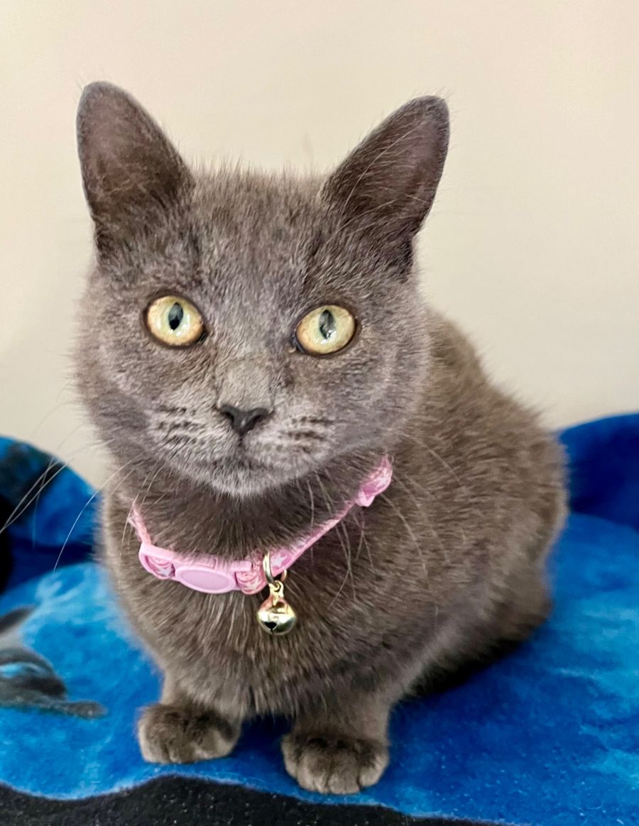 Our little Penguin (Penn) is such a sweet delightful little girl. She is so beautiful with her silver blue fur as soft as a cloud and striking golden green yellow eyes.