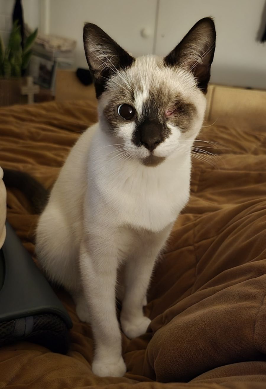 This cutie is most likely a ragdoll cross and so beautiful, despite only having one eye - if anything it just makes him even more handsome.