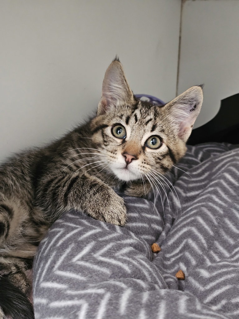 Hey there, I'm Bebeto. I'm a friendly and affectionate kitten who would suit most homes! My playful paws are always ready to pounce on anything that moves. I love playing with wand toys and mysterious shadows on the wall! When I'm finished playing, I love nothing more than finding a warm lap to curl up in.