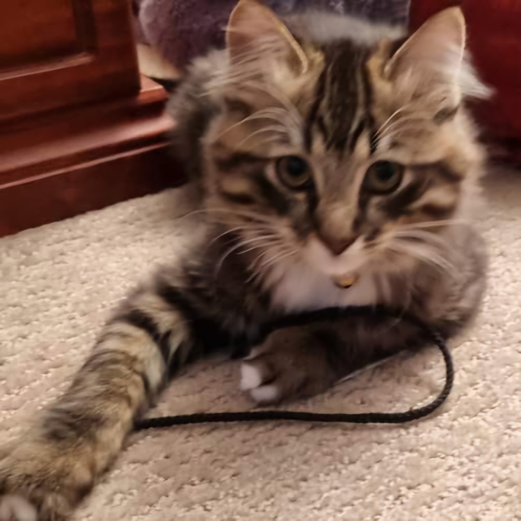 Timmi is a playful boy who especially enjoys playing with the laser light as well as his soft toys for pouncing on.