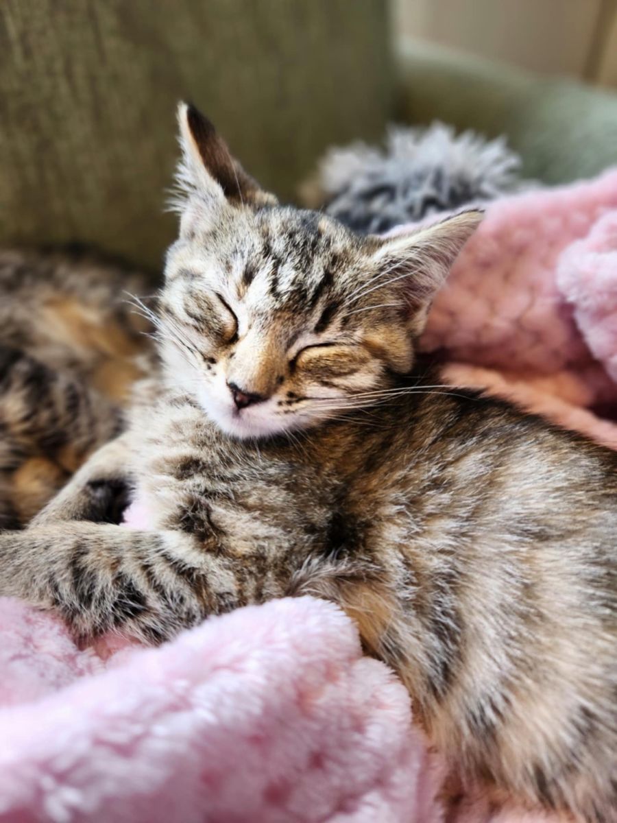 Summer is also an affectionate lap cat who loves curling up with her favorite humans, purring her little heart out. Her affectionate nature extends beyond her cat and human companions as she has affectionately been seen suckling on her blanket.