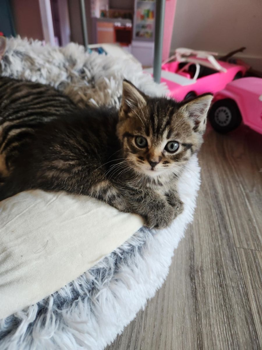 Meet Ghost, the playful, loveable, cuddly companion you've been searching for. Ghost's vivacity shines through in his playfulness, especially with his siblings and older feline friends. His supportive nature and youthful spirits make him an excellent fit for a home with another friendly cat.