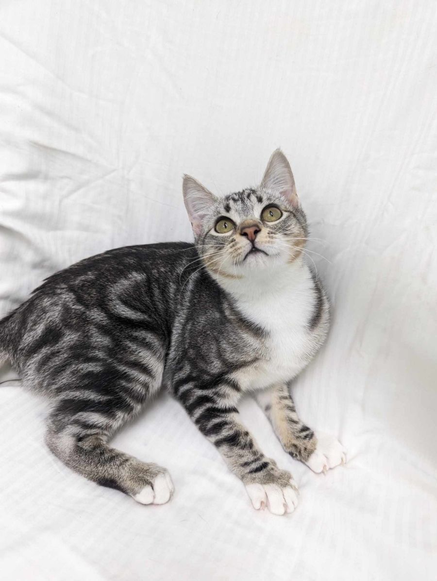 Pichu is an outgoing young cat, who is happy to "help" you with your daily activities. Pichu is inquisitive, curious and very sweet. She has been in a household with a child previously and was the little girls best friend, confidante and accomplice. She was also in the home with Mew, (who is also available for adoption) so is cat friendly. She has met a dog once previously and was curious but cautious. So a home with a dog is a possibility if introductions were performed slowly.