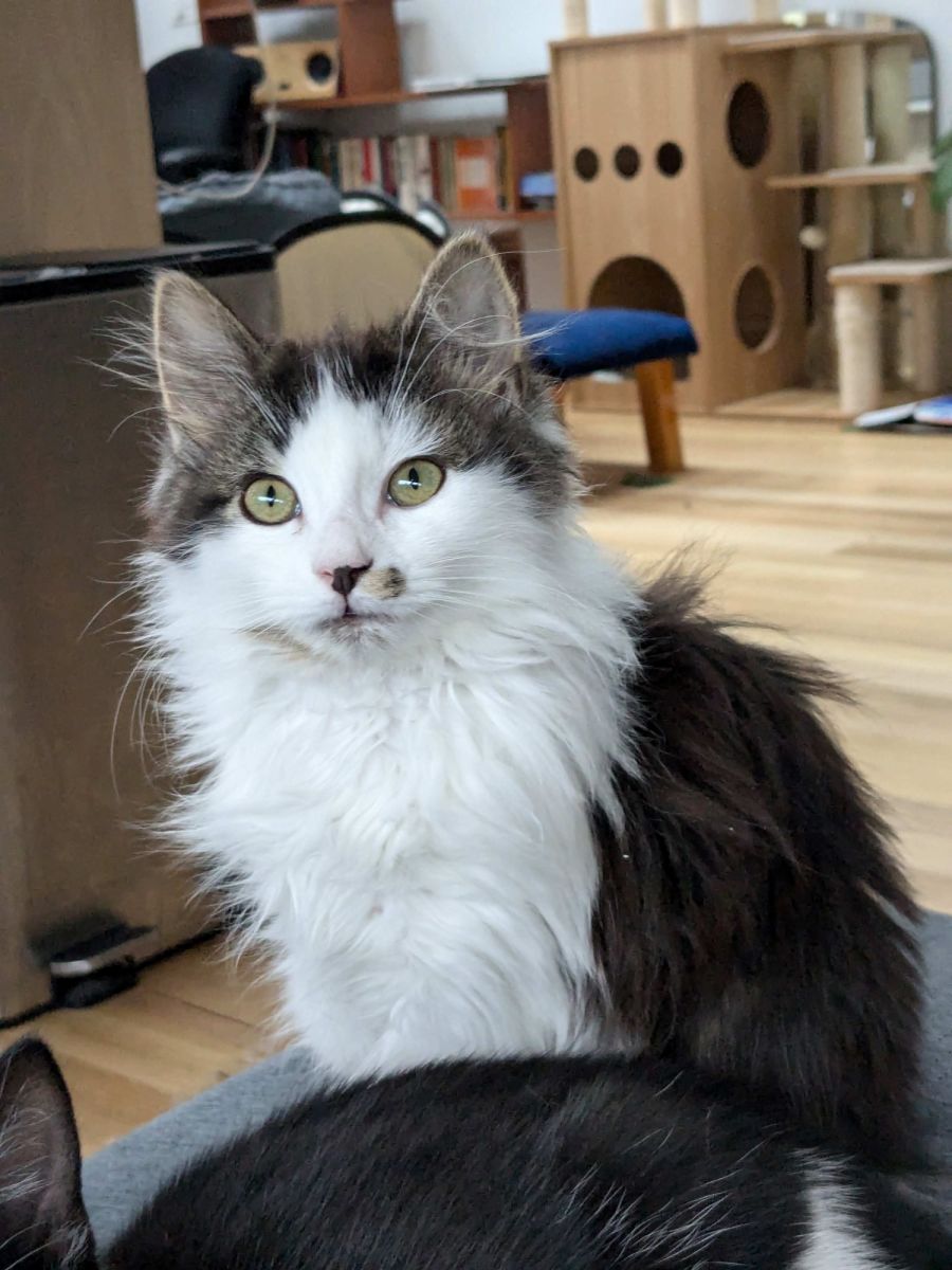 Beautiful and Unique: Her fluffy coat and distinctive beauty mark make Rose stand out as a true feline beauty.