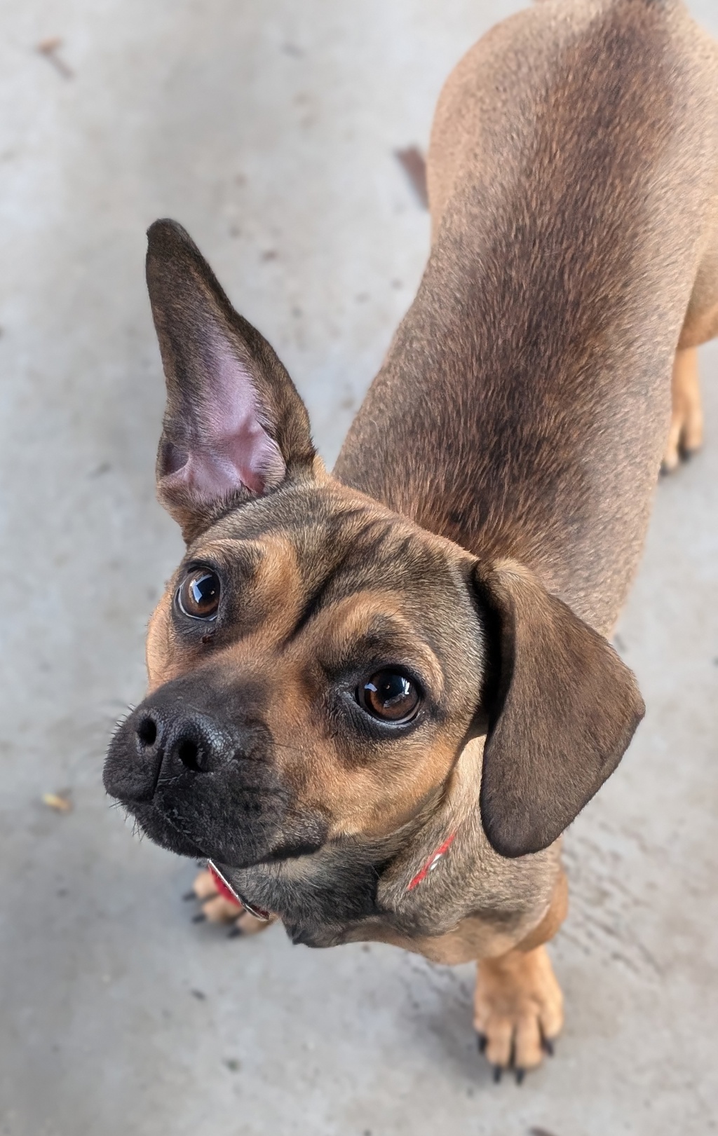 Meet Quinn, an adorable 1-year-old French Bulldog and Dachshund mix with a personality as unique as her breed! With her super cute looks and friendly demeanor, Quinn is poised to be an amazing addition to any family.