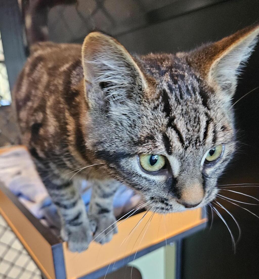 Hello there! I'm Samuel, your soon-to-be best friend. I'm just a kitten, but I've got a big heart. I'm a sweet soul, always ready to give you a purr or a gentle nudge. I'm curious about everything, so expect lots of adventures together. Mellow is my middle name, but I also love to play. I've got energy to spare and I'm always up for a game of chase-the-laser. I'm as friendly as they come, and cuddles? Oh, I can't get enough of them. I can make you laugh with my funny antics too. Why should you adopt me? Because every home needs a Simon. I promise to fill your life with love, laughter, and lots of purrs.