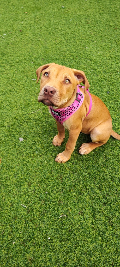 I am living with other dogs and my favourite thing to do is play and go on adventure walks.