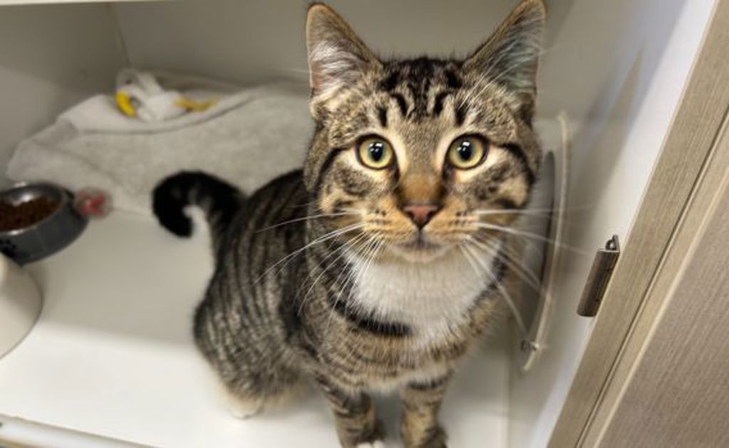 Introducing Bonk, a charming 1-year-and-2-month-old male cat with a personality as playful as his name suggests. Bonk is an affectionate feline who has mastered the art of giving head bonks, and he loves to share them with everyone he meets. His quirky nature and irresistible charm make him a favorite among all who encounter him!