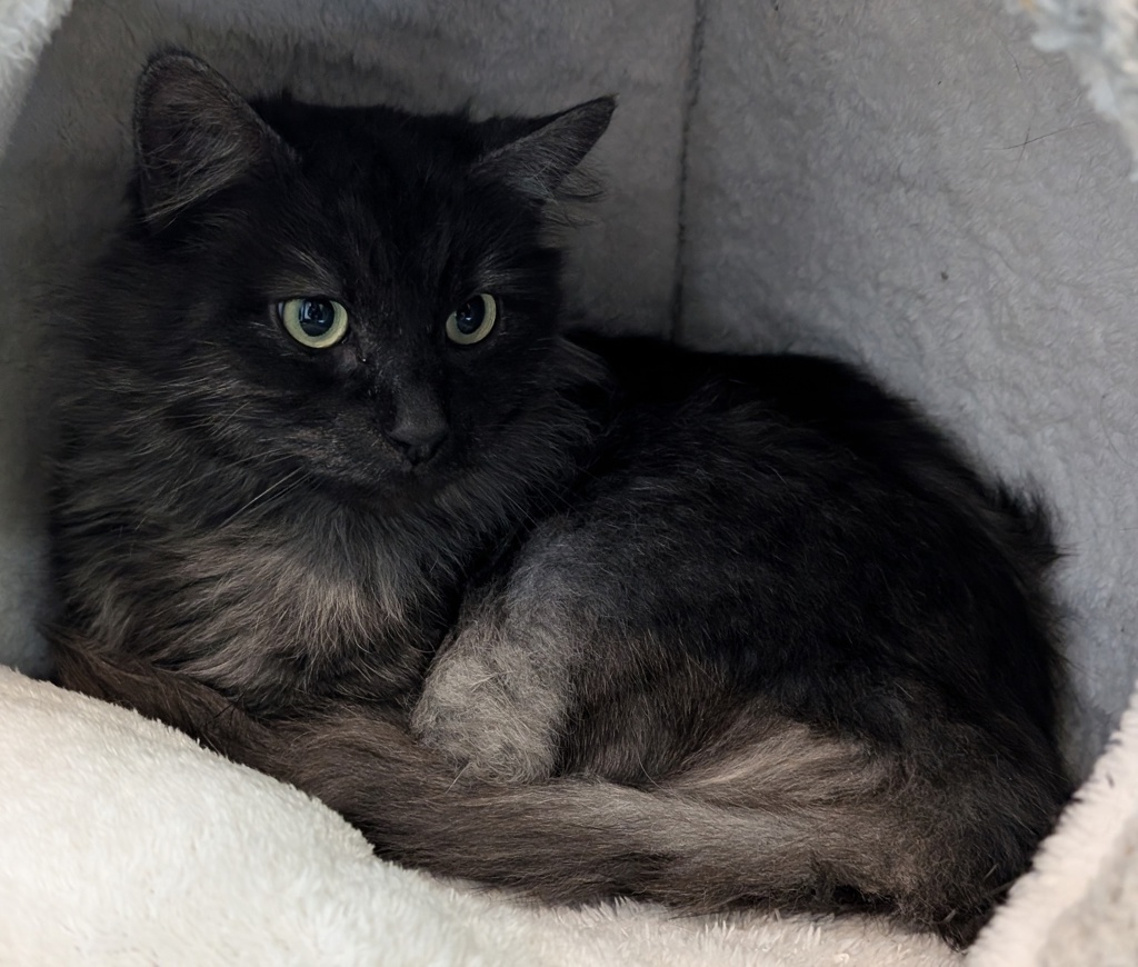 Meet Smokey Joe, a breathtakingly beautiful black smoke Domestic Long Hair (DLH) cat. At just one year old, Smokey Joe is still a young baby, but he already possesses a stunning appearance and a charming personality that captivates everyone he meets.