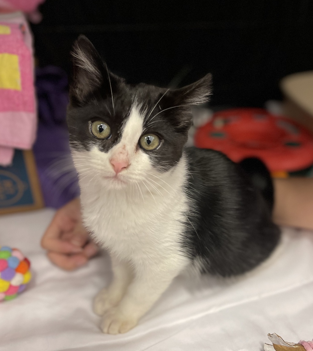 Hi there, I'm Benny. My days are filled with playful leaps and curious sniffs. I'm a bit shy, but with gentle strokes, I warm up quickly. I'm a mellow fellow, preferring quiet corners over bustling chaos. Life's been a bit rough at the start, but I'm learning to trust again. My curiosity often gets the better of me and I can't resist a good toy or a fun game. I'm gentle, never using my claws in play. I'm still building my confidence, but every day I'm a little braver. Adopting me means you'll have a loyal, loving companion who will bring joy and laughter into your home. I promise to be the best friend you never knew you needed.