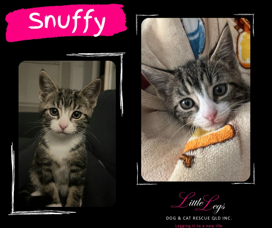 Snuffy is the perfect kitten for any family looking for a new pet to join them. He has the most beautiful eyes in the cutest little face. Snuffy is a cuddly boy who just wants to hang out with the humans whether they are working, watching movies or sleeping. He also loves his food and treats, being the first one at the food bowl. Snuffy is very friendly to other cats, even the adult cats who can be a bit cranky. We would love for you to meet him soon as Snuffy has so much love to give!