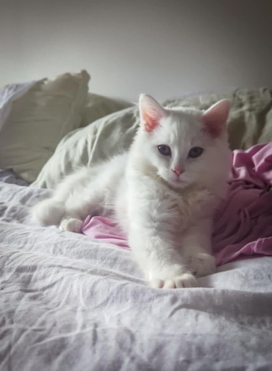 Introducing the fluffy and fabulous Smidge, a 16-week old kitten born on March 23rd who is sure to steal your heart. With her light brown smudge on top of her head setting her apart from her adorable white fluffy brother Marshmallow, she radiates uniqueness and charm.
