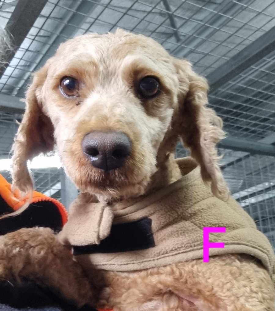 Introducing the delightful Bronte, a female Poodle mix who's just over three and eagerly waiting to join a loving family. Bronte may be a little shy at first, but she warms up quickly and transforms into a soulful and affectionate pup, with an endless love for pats and attention.
