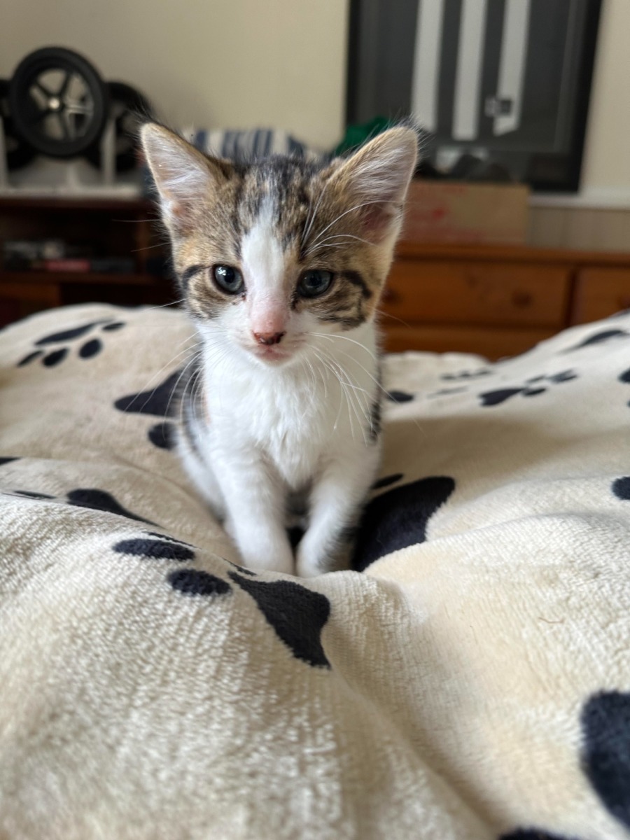 Wave hello to our shining star, Little Leah. This delightful kitten hails from a colony in a farm and is arguably the most sociable and affectionate of her siblings. Leah's delightful curiosity and friendly personality make her the centre of attention, and she wouldn't have it any other way.