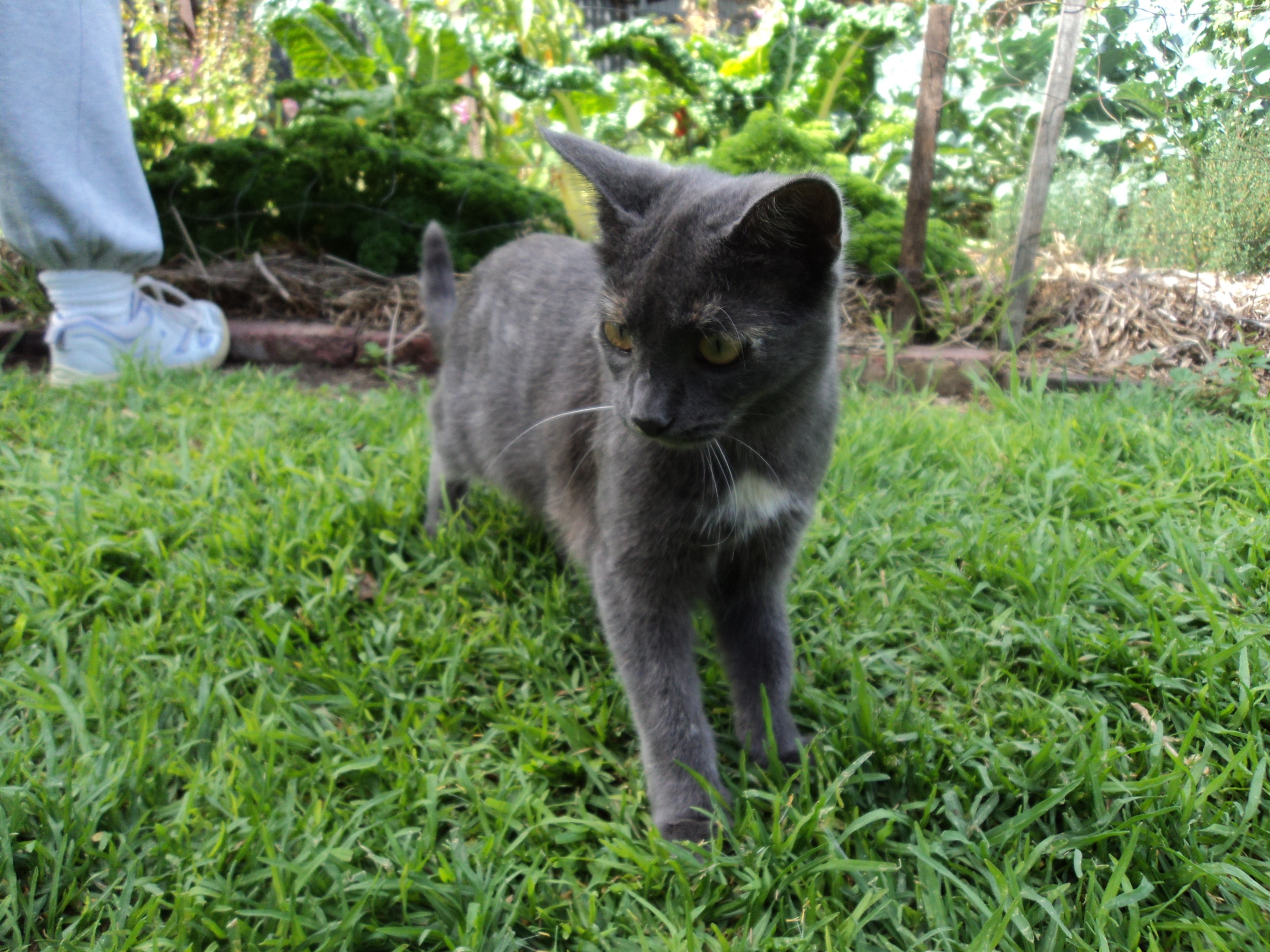 Gracie is a little homebody, prefers to be inside, preferably on a lap. She seems to have some siamese in her, with short silky hair,a slender body and triangular face. She is a very sweet cat. Her sister is blaze
