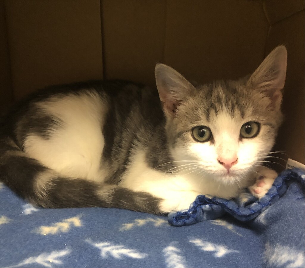 Introducing Nyx, a precious female domestic short-haired kitten with a beautiful soft grey and white coat. Nyx is a gentle soul who thrives on patience and understanding. Initially timid in new environments, she may take some time to settle in and show her true personality. Nyx flourishes with gentle love and attention, slowly coming out of her shell to enjoy playtime and hand feeding. She appreciates a soft touch and calm interactions, responding well to being spoken to softly. Nyx has a penchant for roast chicken and loves playing with toys on strings, showing her playful side when comfortable. She would benefit from older children who understand cat body language and can give her space when needed. With the right nurturing home, Nyx promises to blossom into a loving companion, bringing warmth and joy to those who appreciate her quiet charm and sweet nature.