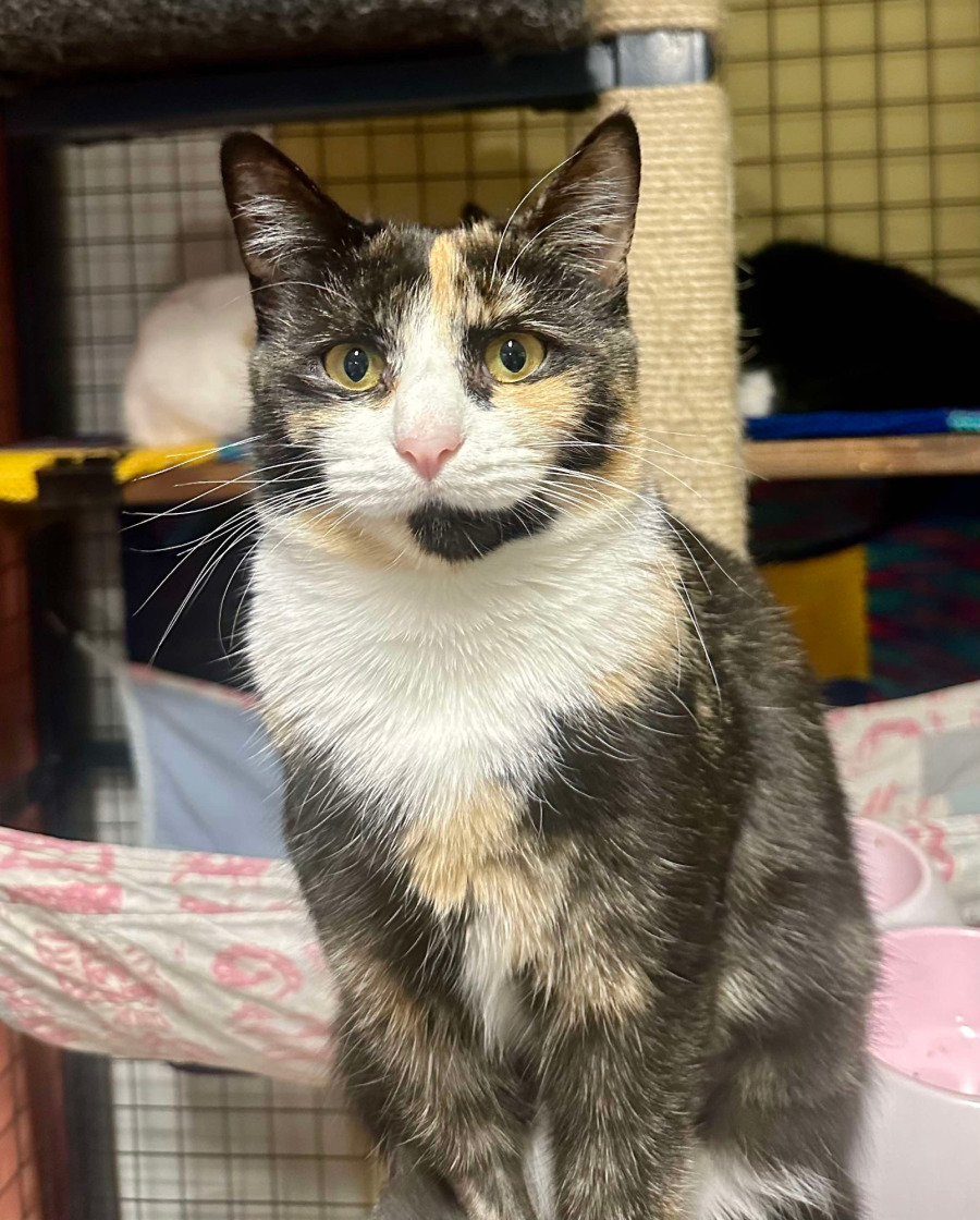 Meet Kit Kat, a vibrant tortoiseshell kitten. This playful little girl loves to explore and can often be found chasing after toys or discovering new corners of her world. Her inquisitive nature ensures that there’s never a dull moment when she’s around, and she’s always ready to turn any ordinary day into an adventure.