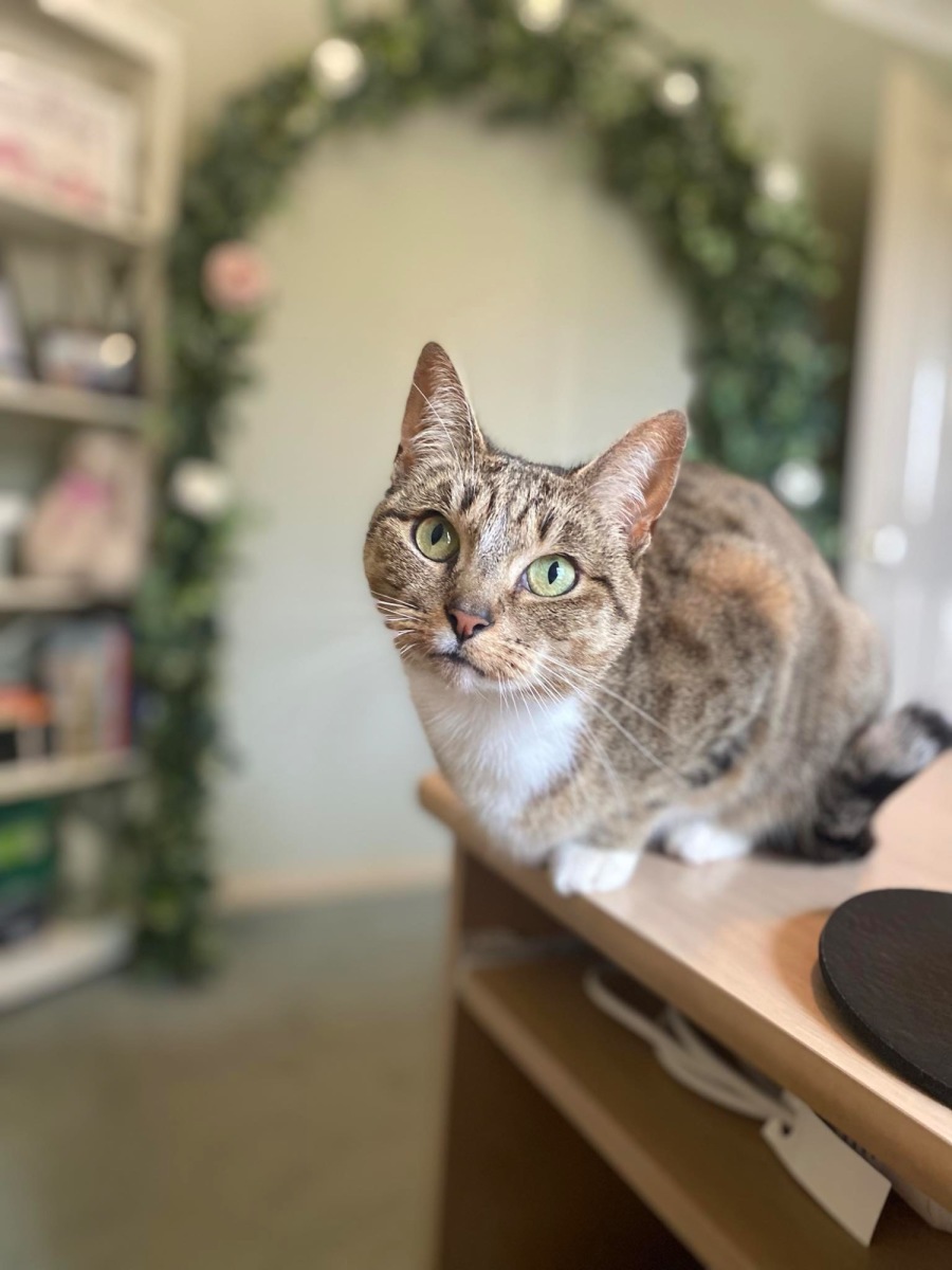 Meet Narlah, your potential new best furry friend! Our queen of cuddles, she's always eager to find a warm lap and see what exciting things you're up to. With a purr that could melt ice, Narlah takes curiosity to the next level—always on the prowl to explore everything happening around her.