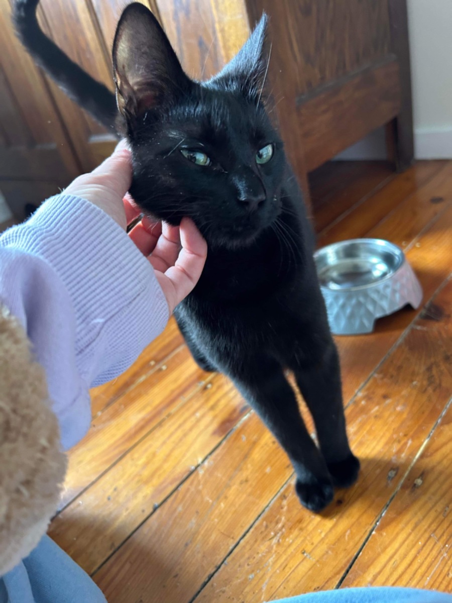 Eddie is the kind of cat who will come for little head scratches, curl up next to you watching a movie and welcome you at the door.