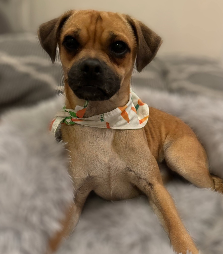 Heās an energetic, fun little Pug/Chihuahua/Jack Russel-Cross who is first to curl up and fall asleep at night after a day of exploring and following you around š“