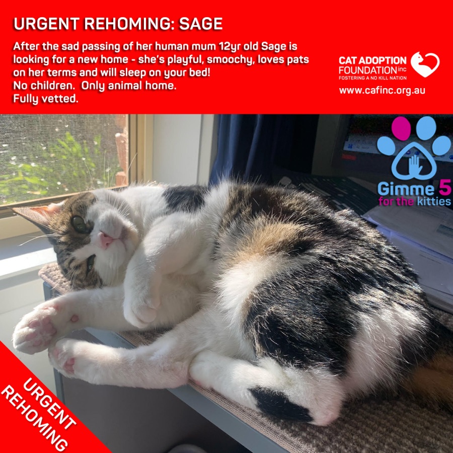 Donate to Sage Private Rehoming No Charge! at Cat Adoption Foundation Incorporated via Shout
