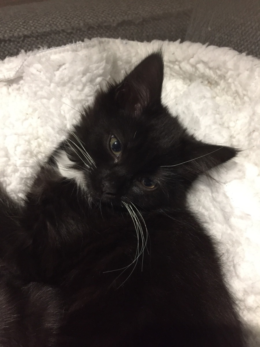 Hi everyone, my name is Puggles and I am a very sweet and cuddly little girl. I have been in foster care with my little brother who I love very much!!. I spend all day playing games with my brother and having lots of cuddles with my mummy (foster carer). When I play I am very gentle and will happily sit on someone's lap for hours playing games with them. I love to be picked up and lay back and go to sleep while purring very loudly. I tell my mummy that I would love to go to a forever home where I can get lots of cuddles and play lots of games with my new family. Are you looking for a really lovely little cuddle girl?. If so then I am the perfect kitten. Come soon, lots of love Puggles xxx
