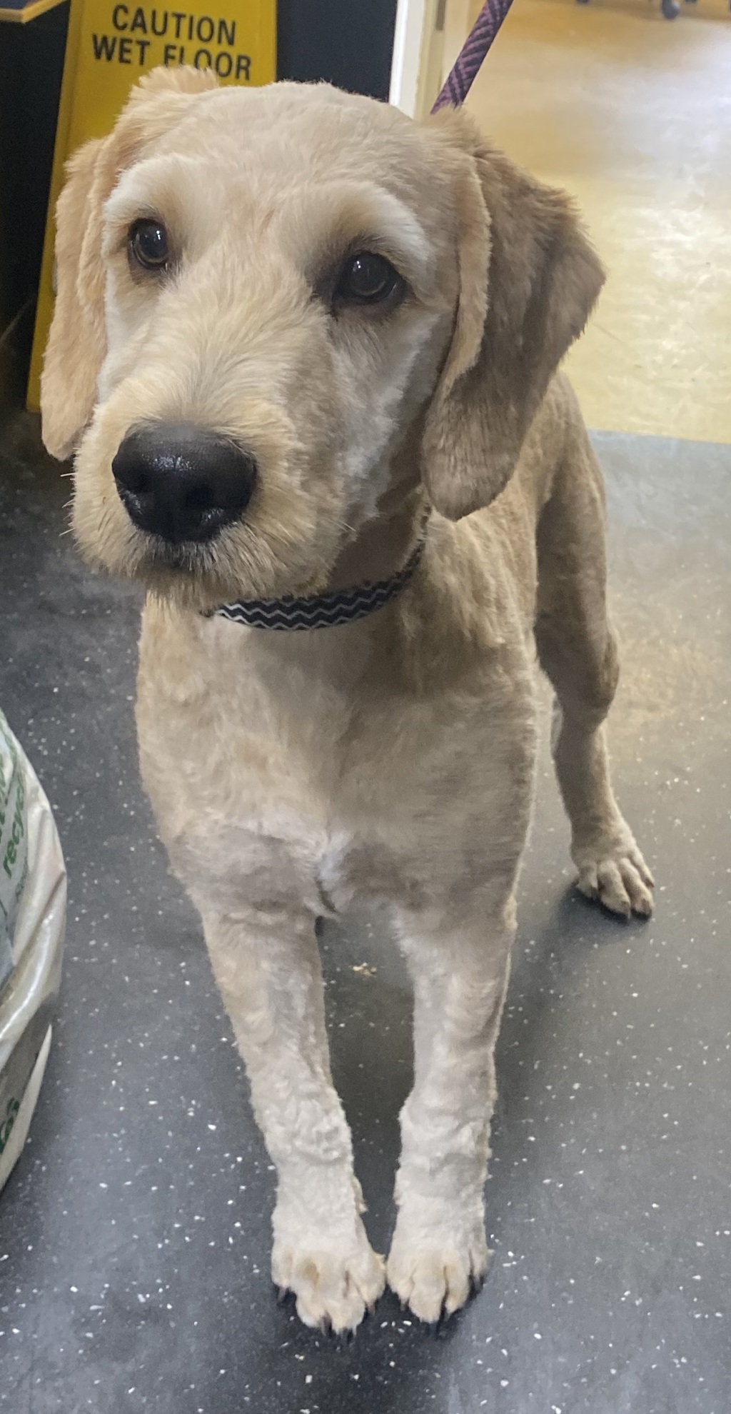 Rocco is an exuberant 1-year and 1-month-old Golden Retriever and Poodle mix, bursting with energy and love. With his bright eyes and playful demeanor, Rocco is on the lookout for a family who will welcome him into their home and hearts. Having spent his life outdoors, Rocco dreams of becoming an integral part of a family, enjoying the warmth and comfort of inside life.