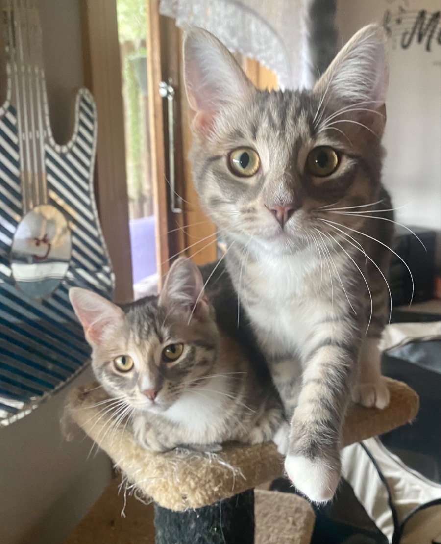 Mork and Mindy are siblings but also best buddies. They always pair off together to play and sleep even when they have others to play with.