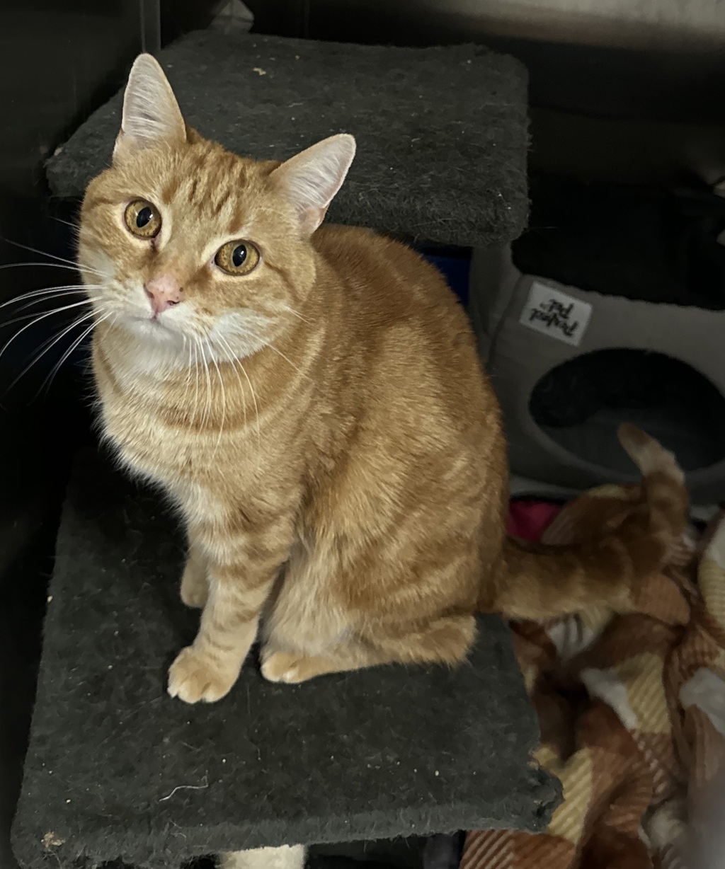 A sweet and affectionate female cat with a heart full of love to give. She adores pats and treats, making every interaction a delightful experience. However, Tonks can get a bit stressed at times and appreciates having a quiet space to retreat to when she needs some alone time.