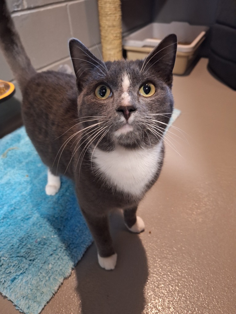 Hello, I'm Occy! I'm a sweet, friendly, and cuddly feline. I love to be around people and make them smile. I'm a social butterfly and I enjoy a good cuddle session. I've been known to be a great listener, too. You'll never feel alone when I'm around. I'm also pretty low maintenance. I don't require a lot of playtime, just your love and affection. I promise to make your home a happier place with my sweet and friendly nature. I hope you'll consider giving me a forever home, because every home needs a little Occy love!
