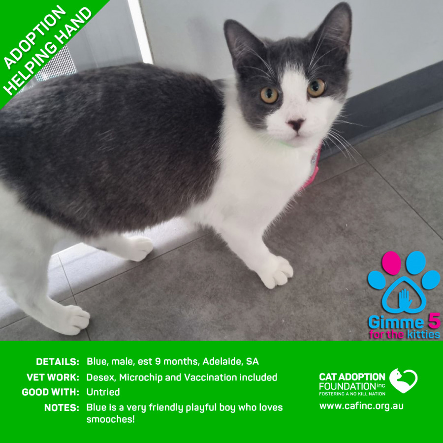 Donate to Blue Helping Hand Adoption! at Cat Adoption Foundation Incorporated via Shout