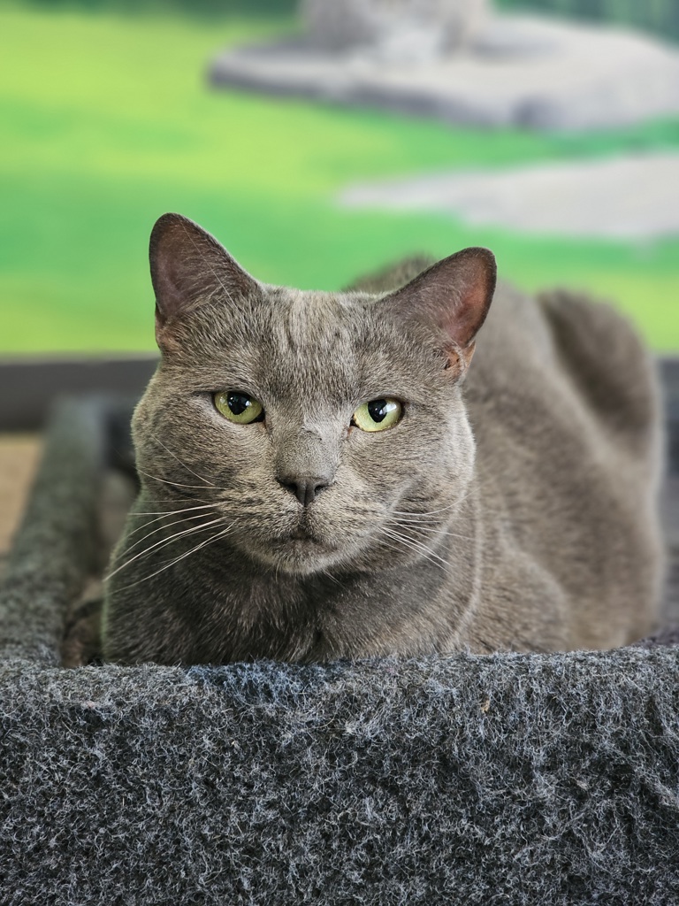 Pocahontas is a gentle soul who adores pats and head bunting, rewarding you with the sweetest purrs. She's incredibly easy to handle, making her the perfect companion for anyone looking for a low-maintenance, high-love kitty.