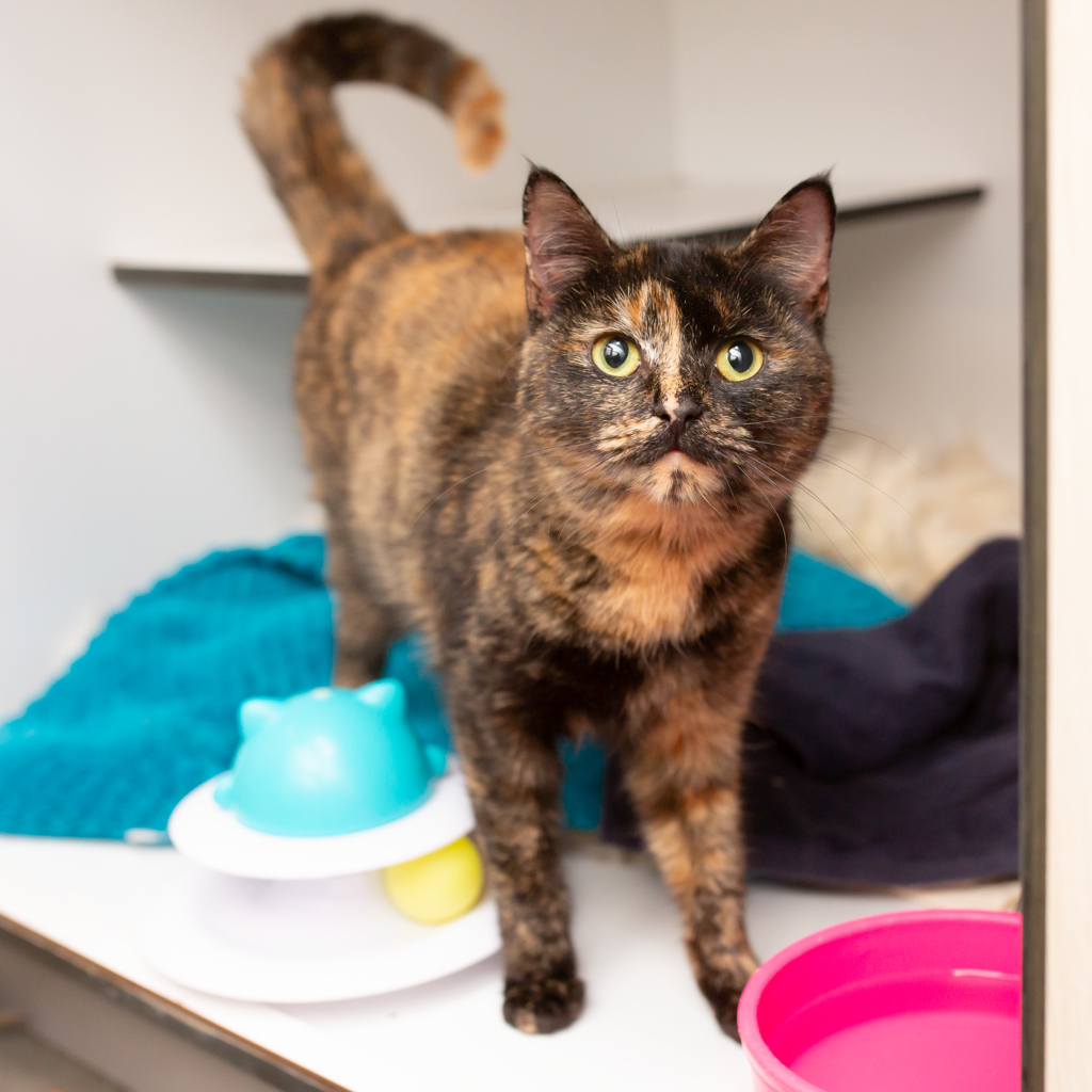 Meet Unique, our beautiful tortoiseshell girl whose name says it all! This delightful feline is a bundle of energy and love, ensuring that no two days are ever the same. With Unique around, you'll always be in for fun surprises and memorable adventures.
