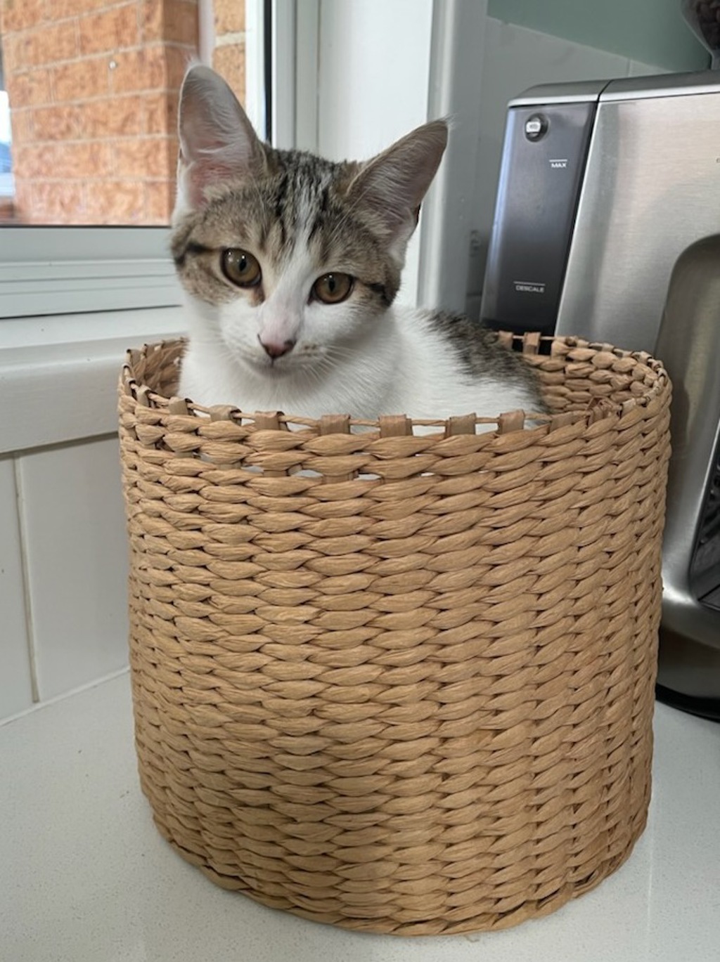She shares the foster home with older cats and a gentle, excitable dog, so would adapt to a family with other pets. She was a bit sceptical of the dog at first but her curiosity wins in the end.