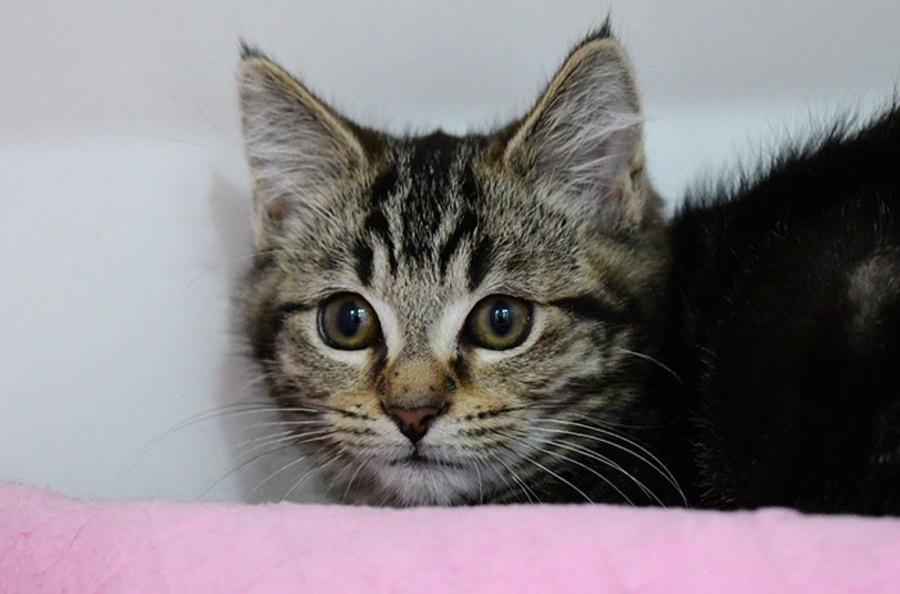 Just like all kittens, Rhea would love a cat tree to climb on and scratch, and an assortment of toys to play with. She should be fed kitten food multiple times a day to ensure that she grow up big and strong.