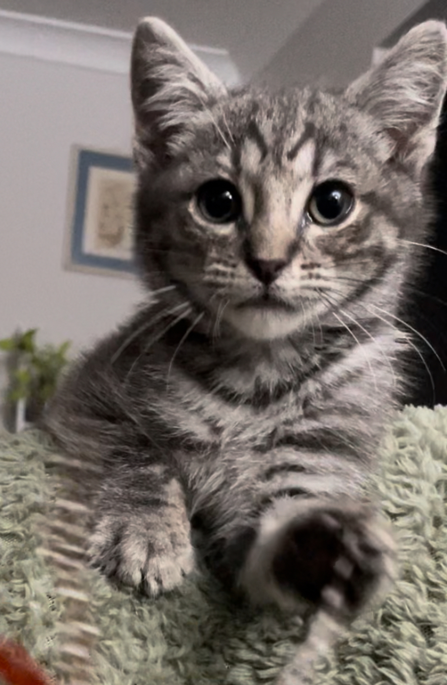 Introducing Cricket, the purr-fect companion who combines snuggles and playtime in one adorable package! This cuddle-loving kitten adores curling up under blankets next to his humans, but is quick to pounce back into play at any time! If you're seeking a furry friend who brings the best of both worlds—sweet, cozy moments and exciting, playful antics—look no further than Cricket. Cricket thrives in the company of feline friends, making him the ideal addition to a home that already has cats. Adopt Cricket today and bring home endless love, warmth, and fun to your feline-friendly household!