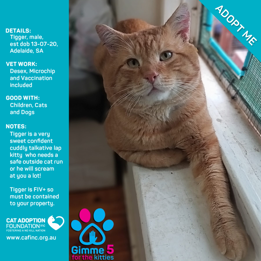 Donate to Tigger Adoption Fee Waived! at Cat Adoption Foundation Incorporated via Shout